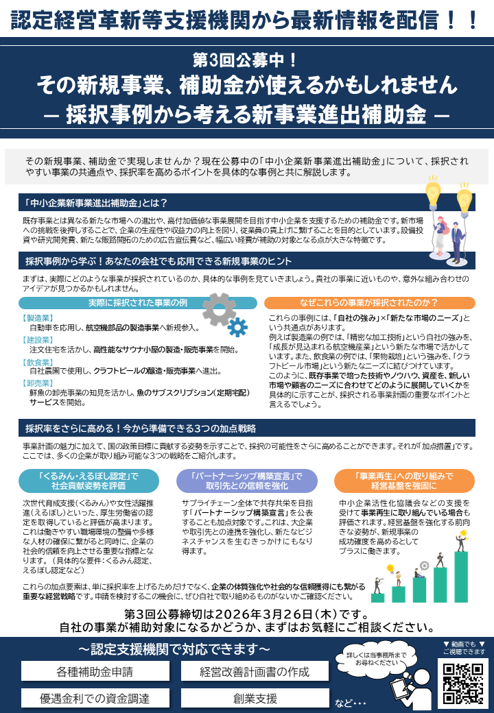 こんにちは、こいのぼりの松田です。 本日は「中小企業新事業進出補助金」のご紹介です。